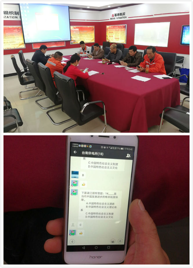 4月10日下午,臺南供電所全體黨員靜坐在會議桌旁,每人拿著一部手機,進行著一場特殊的考試。近年來,該所黨支部積極響應公司黨委創(chuàng)新黨員教育管理舉措,利用微信公眾平臺,開展“掌上黨課”和“指尖上廉政教育”活動,學習黨的十九大精神,進行黨紀黨規(guī)知識測試,實現(xiàn)隨時、隨地、隨身,提升了學習教育成效。(劉繼美)